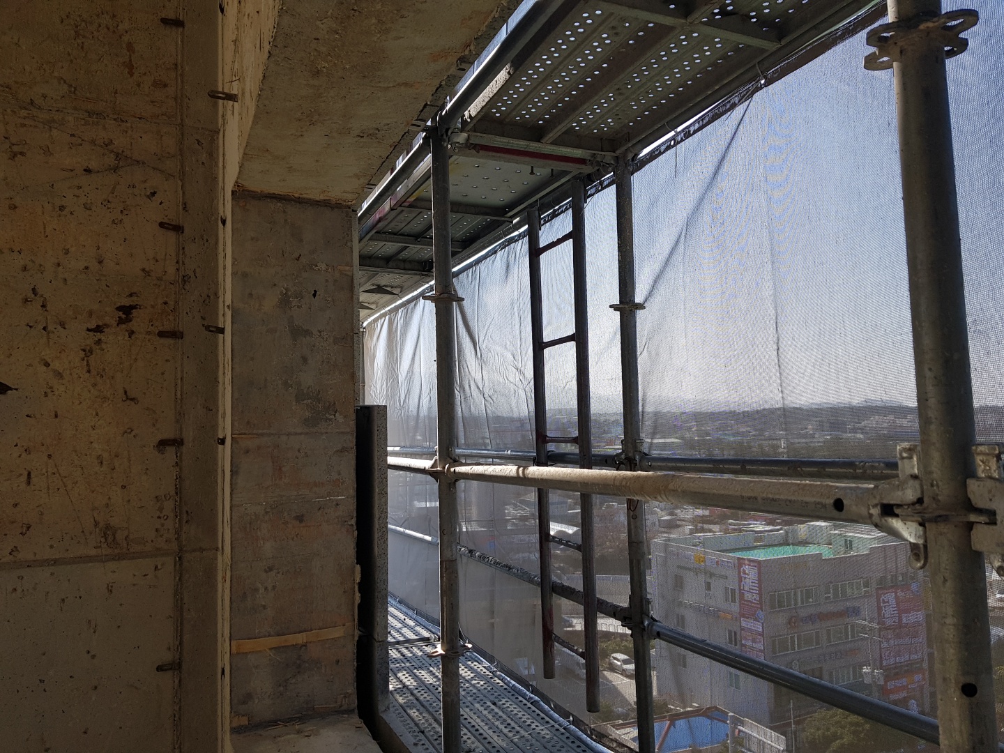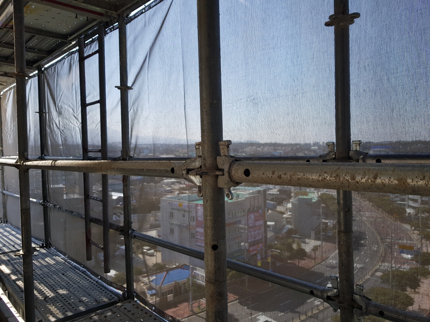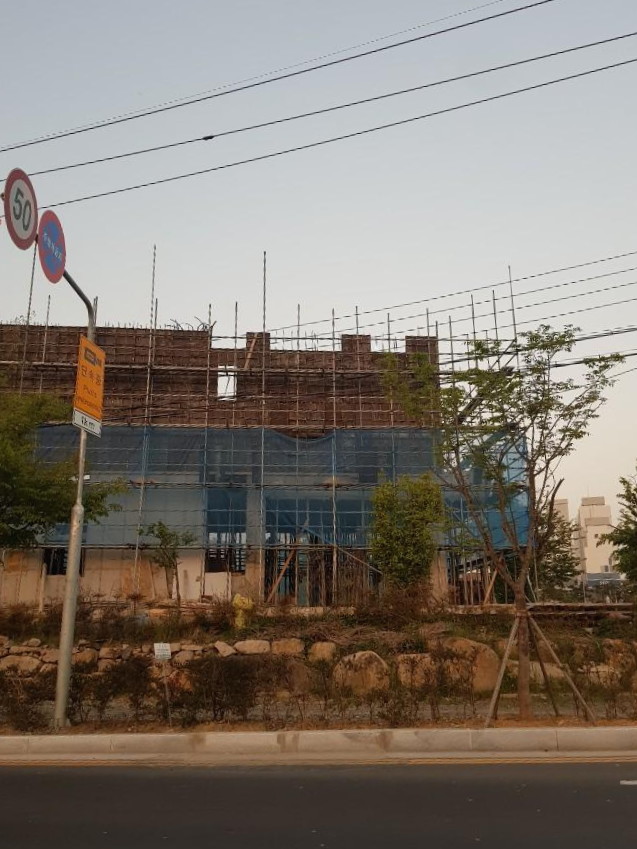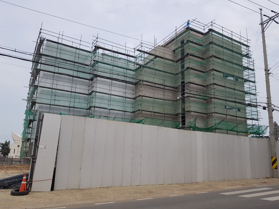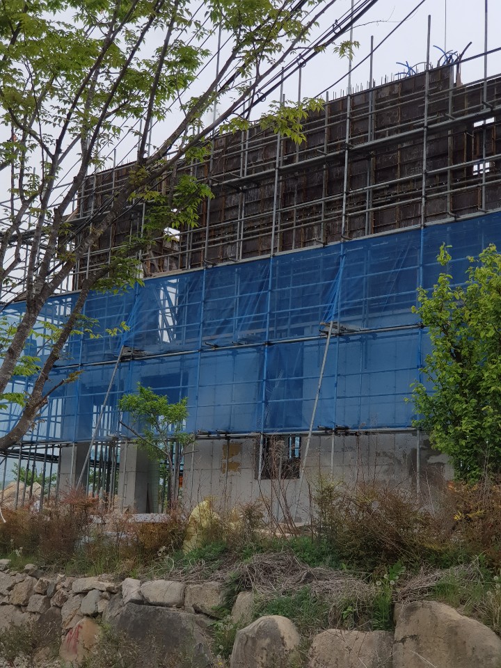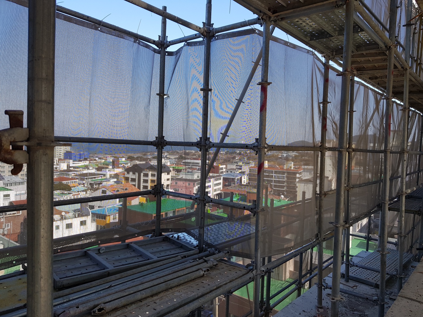 저층 상가건물을 건축할때는 시스템 비계를 많이 사용합니다.