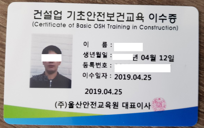 오늘은 건설업 기초안전보건교육 이수증 받고 왔습니다