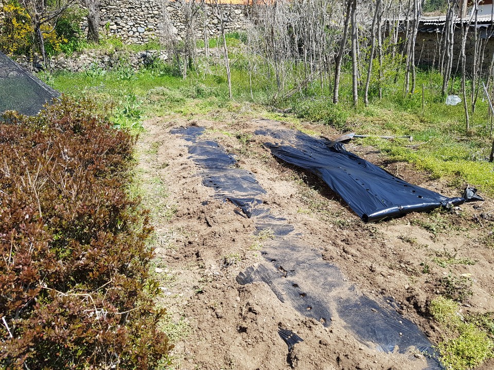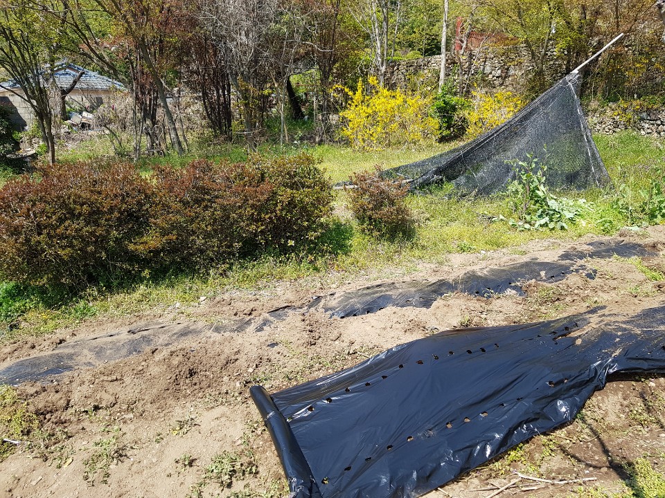 비닐로 땅을 덥고, 덥기 전 거름 주고.....