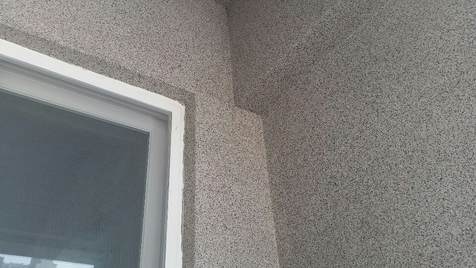 부실공사로 의심되는 드라이비트 공법으로 시공된
