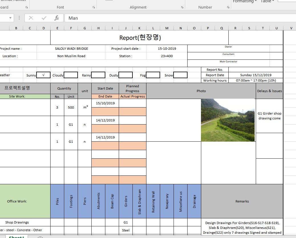 건설,교량 (bridge )현장에 필요한 여러가지 작업일지가 필요하겠지만
