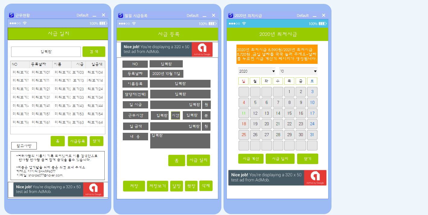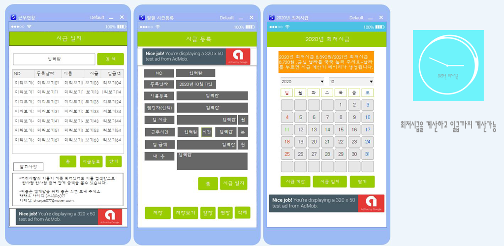 시급계산기의 장점은 빠른 터치로 하루 시급 계산이 이루어지는데 날짜 담당자 시간 일금액 총금액을 한눈에 볼수 있는 것이 큰 장점 중 하나라고 생각됩니다.