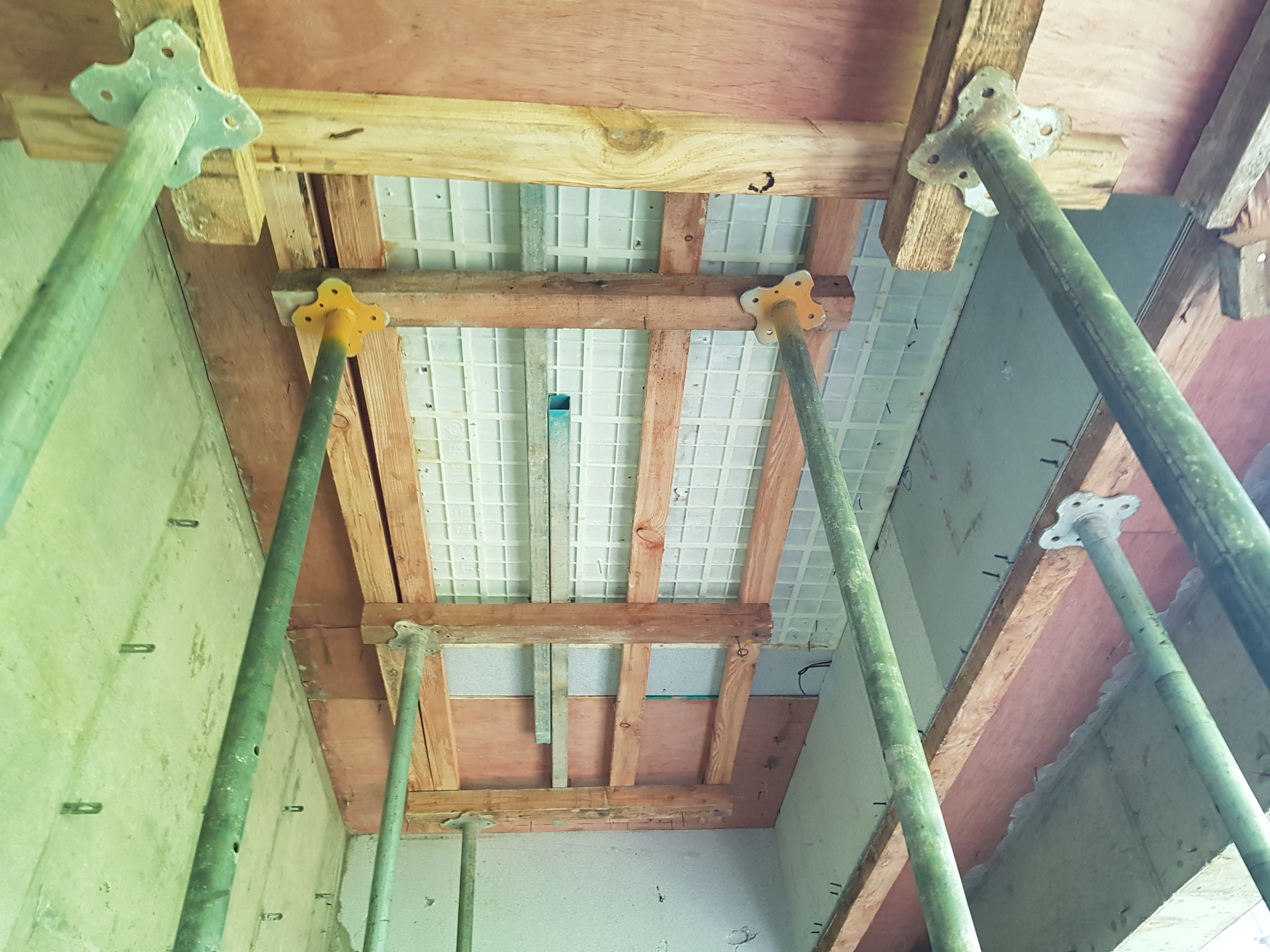 거푸집 설치를 위한 비계틀과 마감용으로 비계를