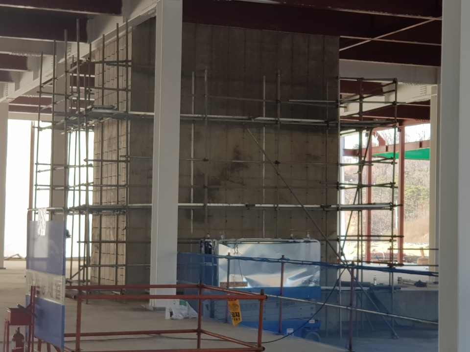 거푸집 설치를 위한 비계틀과 마감용으로 비계를