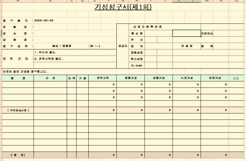 사장님들을 위해 기성 청구양식을 만들어 보았습니다.