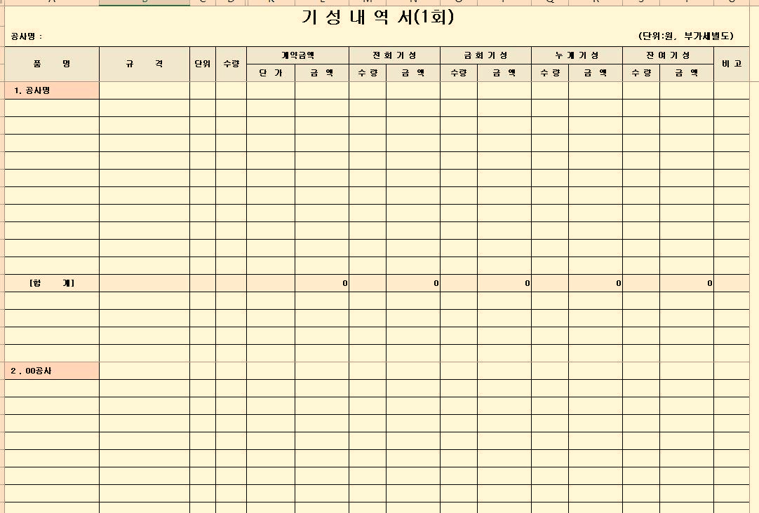 보탬이 되기 위해 기성 청구 양식을 만들어 보았습니다.