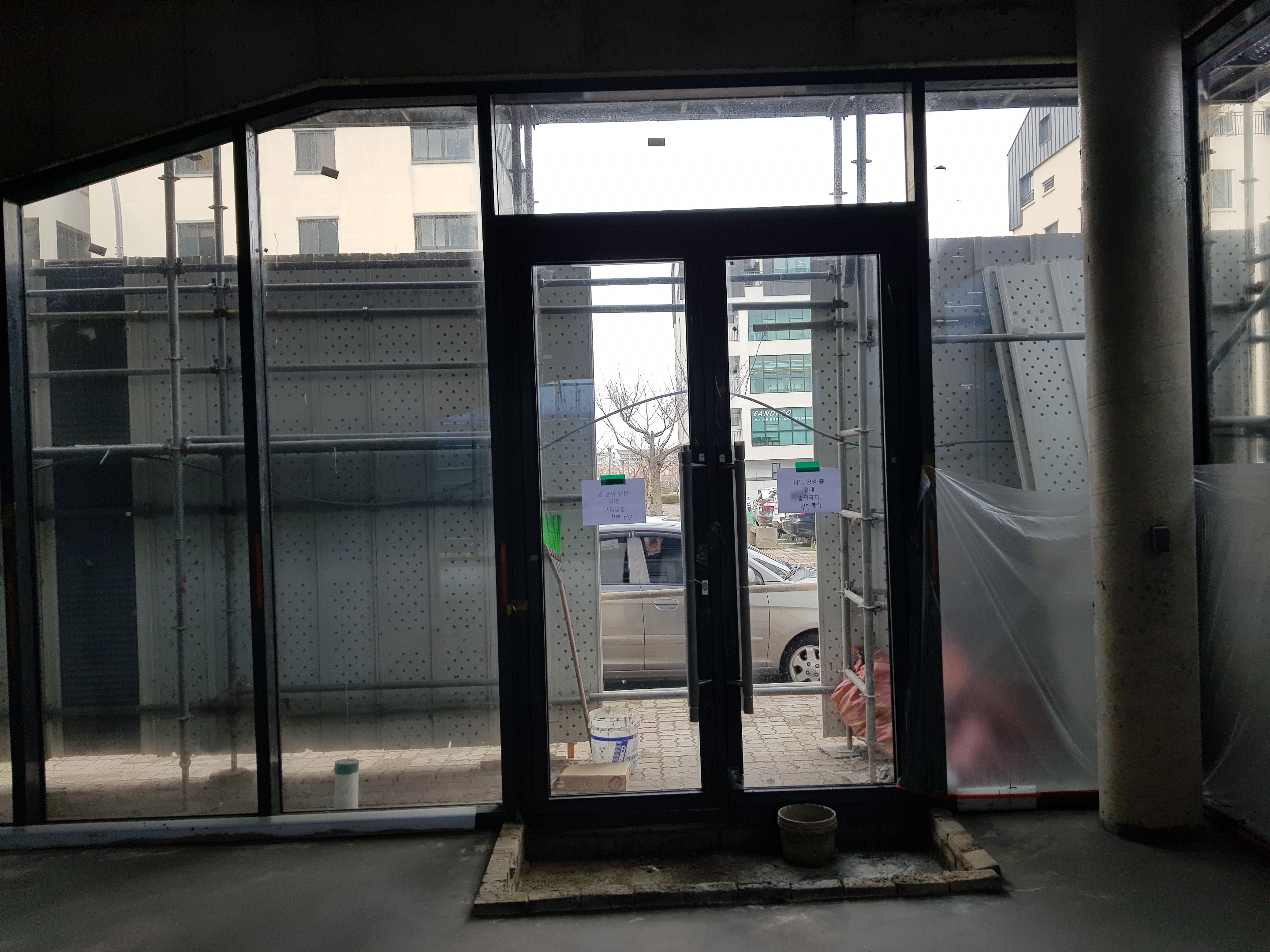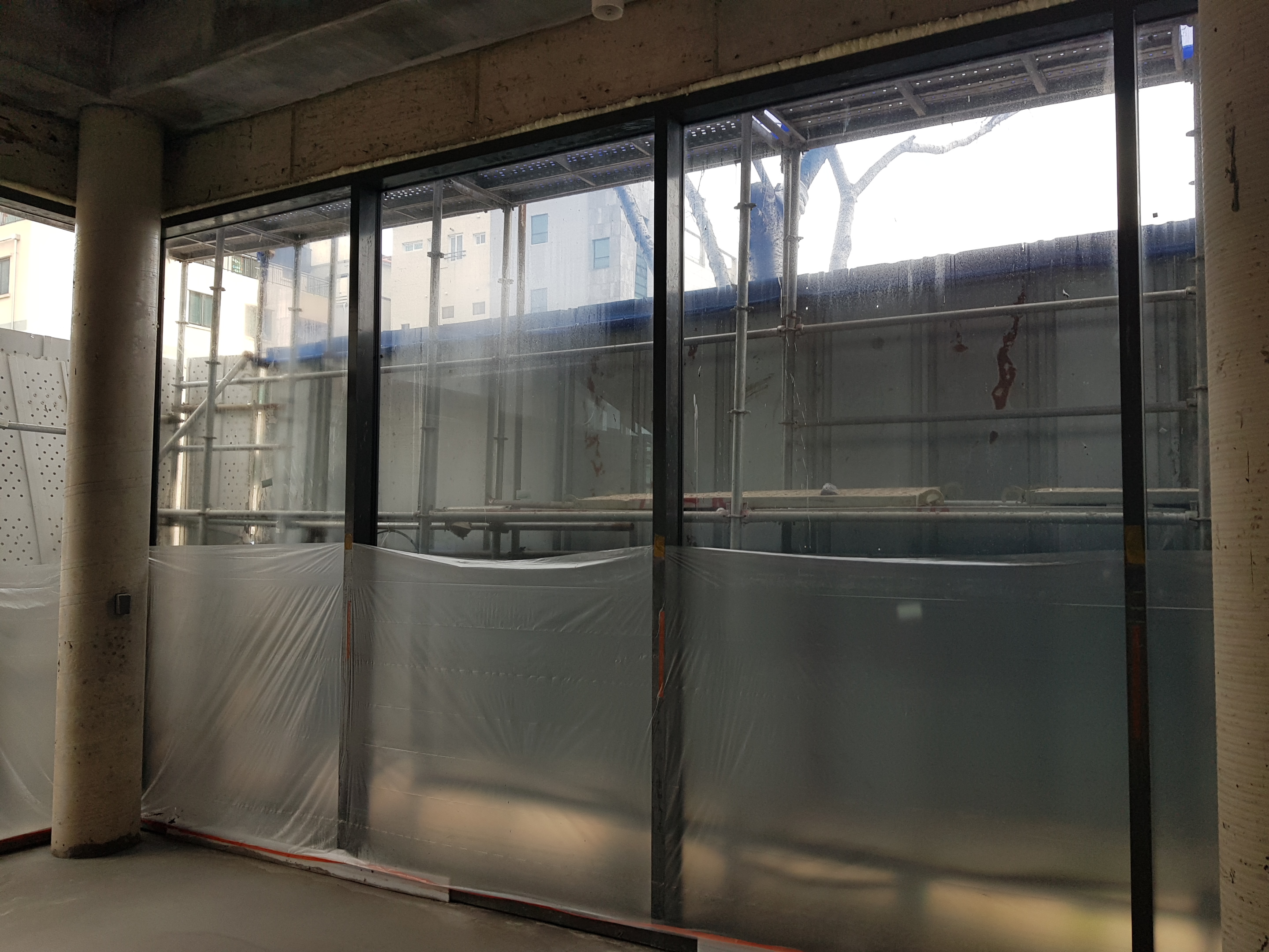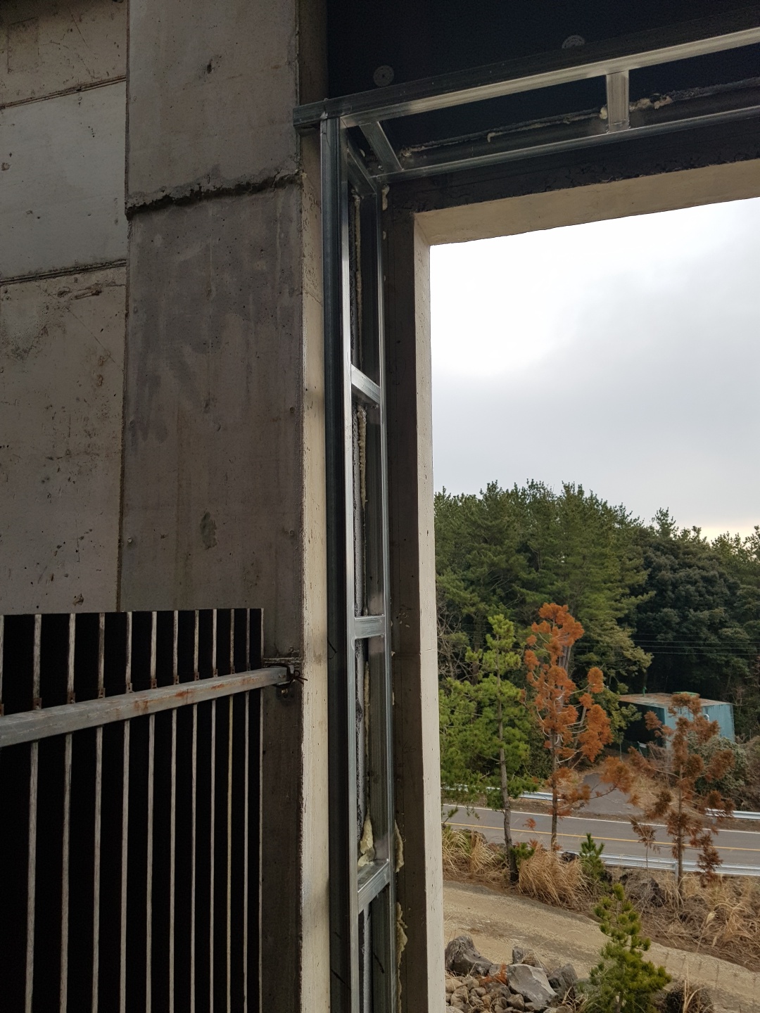 외부에 노출되는 것이 창틀이 아닌 유리만 노출 되겠금하기 위해 내부에 각파이프로 베이스 판을 별도로 제작된 경우이다. 이렇게 시공할 경우 창을 열었을 경우에 내부 벽이 노출 될 우려가 있기 때문에 미리 확인하는 것이 좋습니다. 이런 작업은 보다 디테일한 검수가 필요하며 실용성과 디자인부분을 잘 협의 후 진행하는 것을 권합니다.