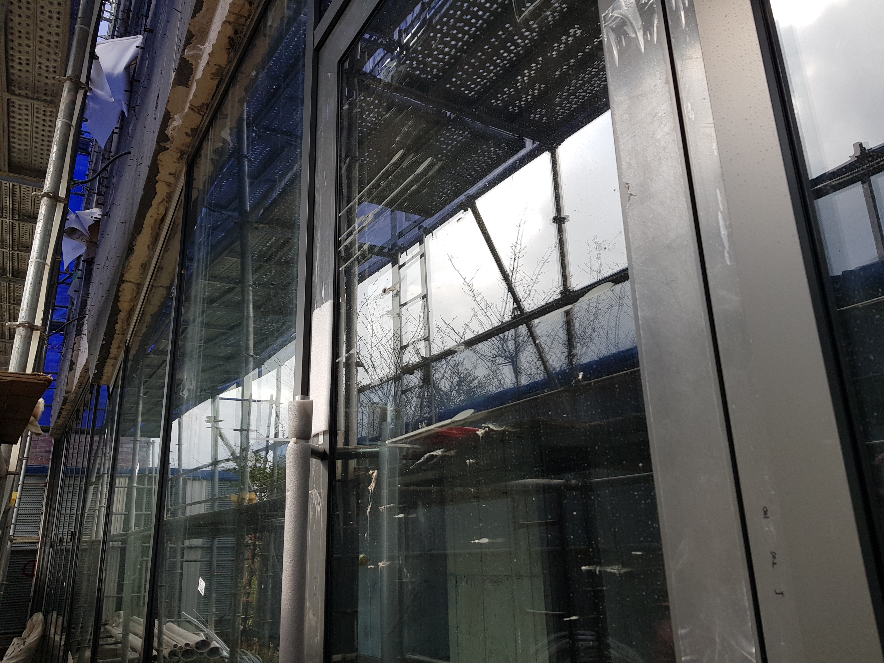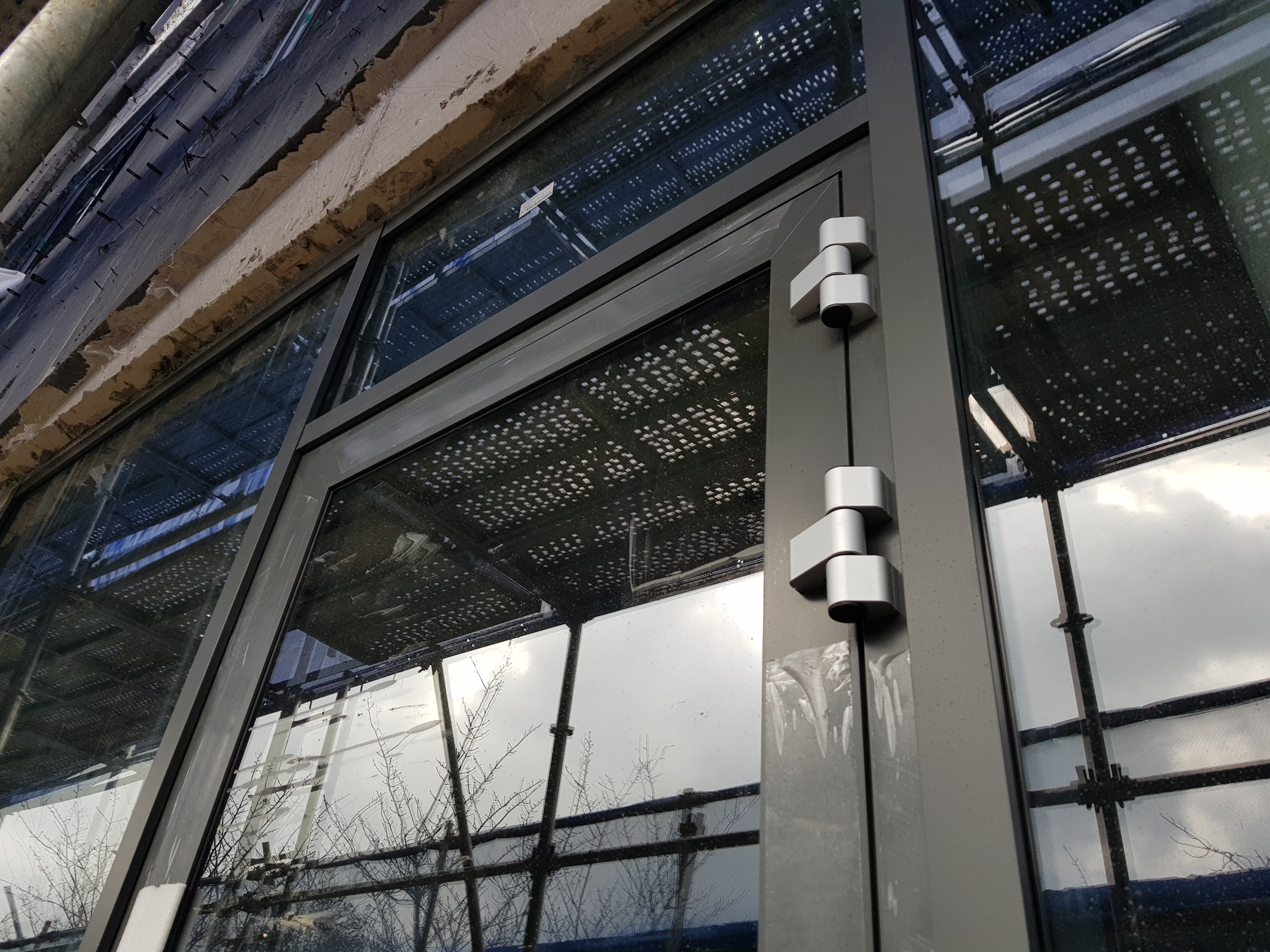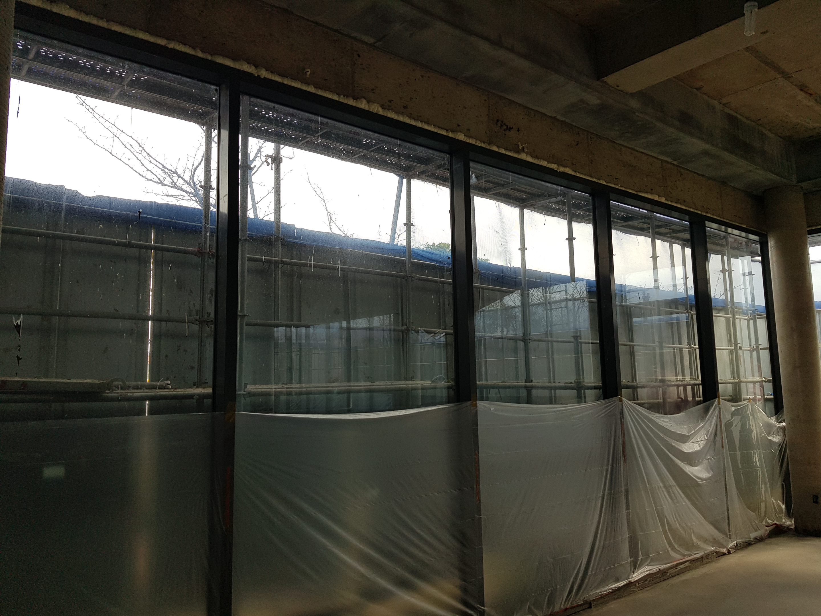 외부에 노출되는 것이 창틀이 아닌 유리만 노출 되겠금하기 위해 내부에 각파이프로 베이스 판을 별도로 제작된 경우이다. 이렇게 시공할 경우 창을 열었을 경우에 내부 벽이 노출 될 우려가 있기 때문에 미리 확인하는 것이 좋습니다. 이런 작업은 보다 디테일한 검수가 필요하며 실용성과 디자인부분을 잘 협의 후 진행하는 것을 권합니다.