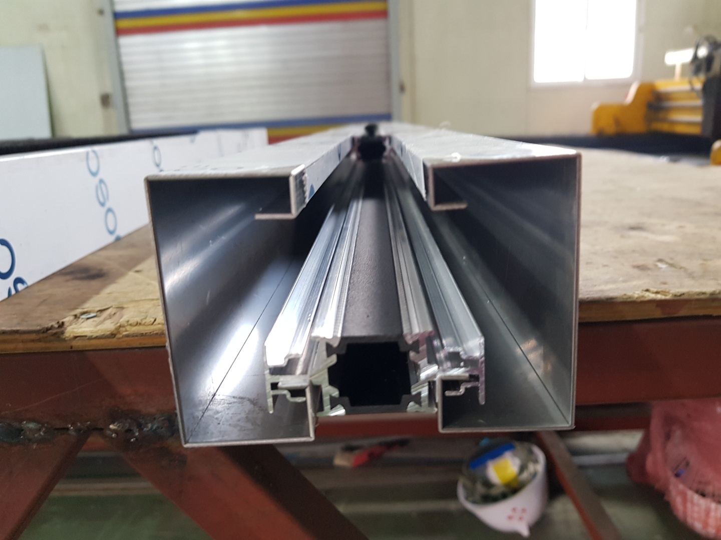위사진은 스텐 강화유리도어에 바 내부에 끼워 넣는 단열반 구조입니다.