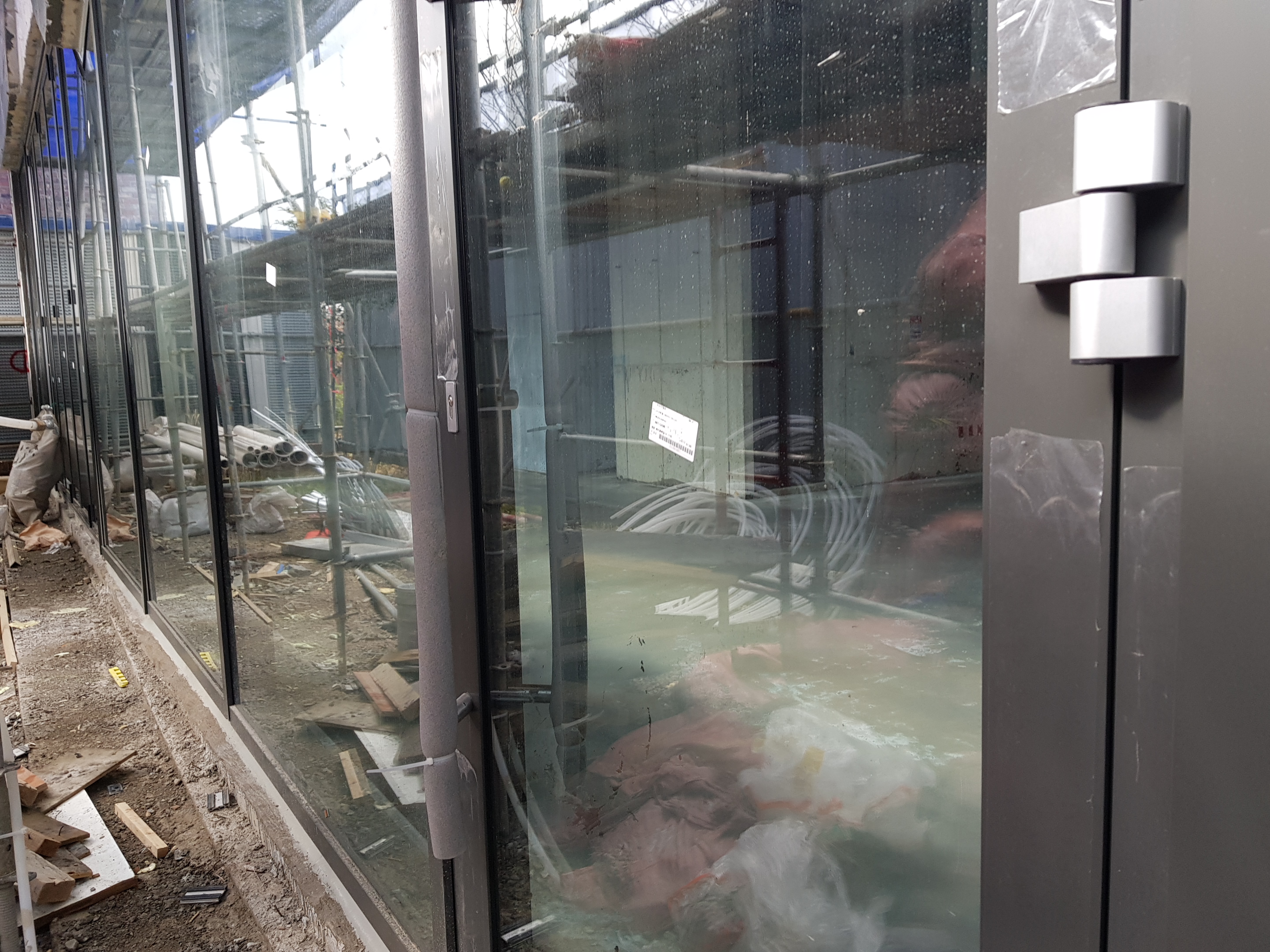 외부에 노출되는 것이 창틀이 아닌 유리만 노출 되겠금하기 위해 내부에 각파이프로 베이스 판을 별도로 제작된 경우이다. 이렇게 시공할 경우 창을 열었을 경우에 내부 벽이 노출 될 우려가 있기 때문에 미리 확인하는 것이 좋습니다. 이런 작업은 보다 디테일한 검수가 필요하며 실용성과 디자인부분을 잘 협의 후 진행하는 것을 권합니다.