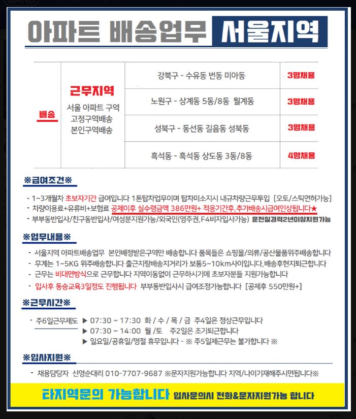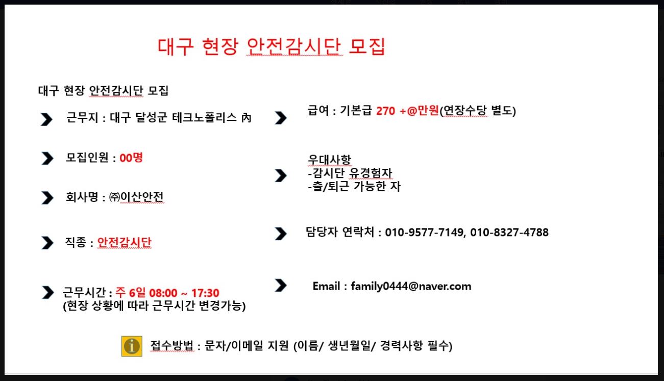 ※아웃소싱업체 아닌 현장팀에서 직접구인(확인가능)