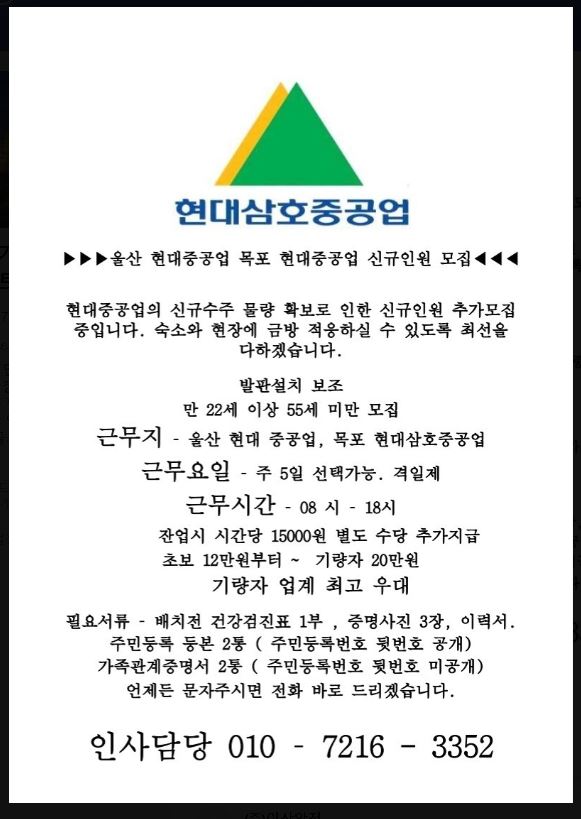 근무장소:현대삼호중공업(목포위치)