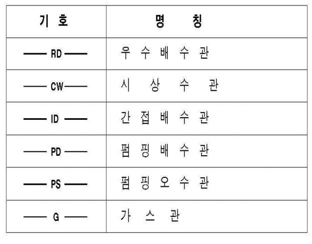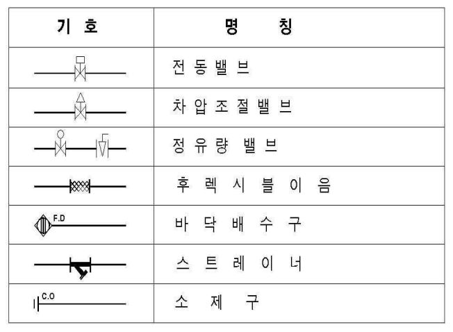HWS는 온수 공급관 ,HWR 온수환수관 , MTWS 중 온수공급관 , MTWR 중온수환수솬 ,----E-----팽창관 , RG 냉매가스관, RL 냉매액관,