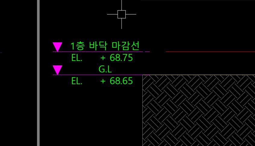 1층 바닥레벨이 지면에서 GL:EL+68.65 1층 바닥 마감선 EL 68.75 또는 1FL: GL +100이라고 표기합니다.