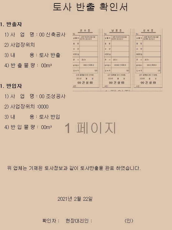 토사 반출증 양식이 무료로 필요하신분들은 다운 받아가세요