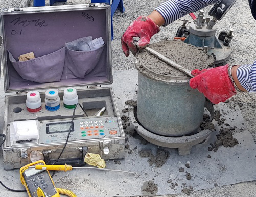 콘크리트 성분을 확인하고 현장에서