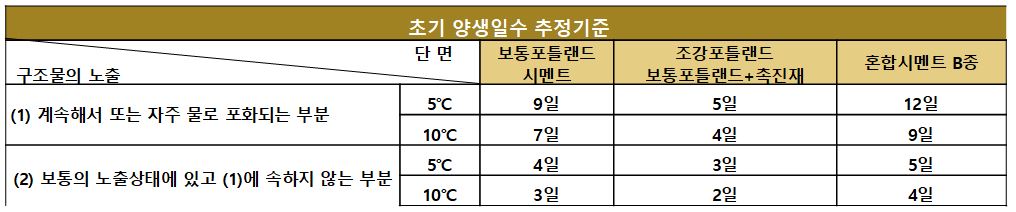 응결경화 초기에 동결시키지 않기 위함. 양생종료 후 동결융해작용에 대하여 충분한 저항성을 가지기 위함 .