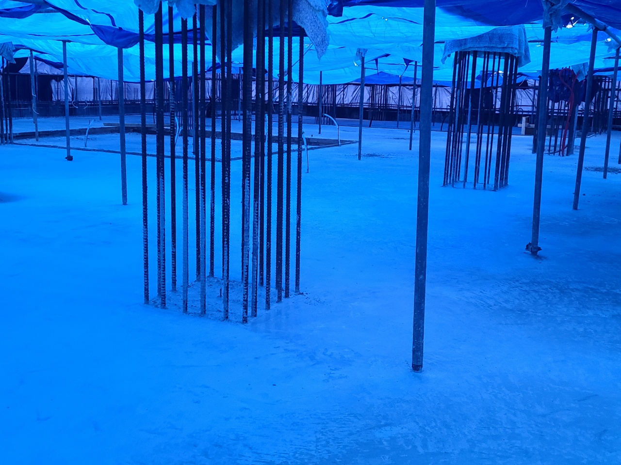 ▶ 비계 파이프 및 로프로 천막보양을 위한 틀을 콘크리트 타설전 설치