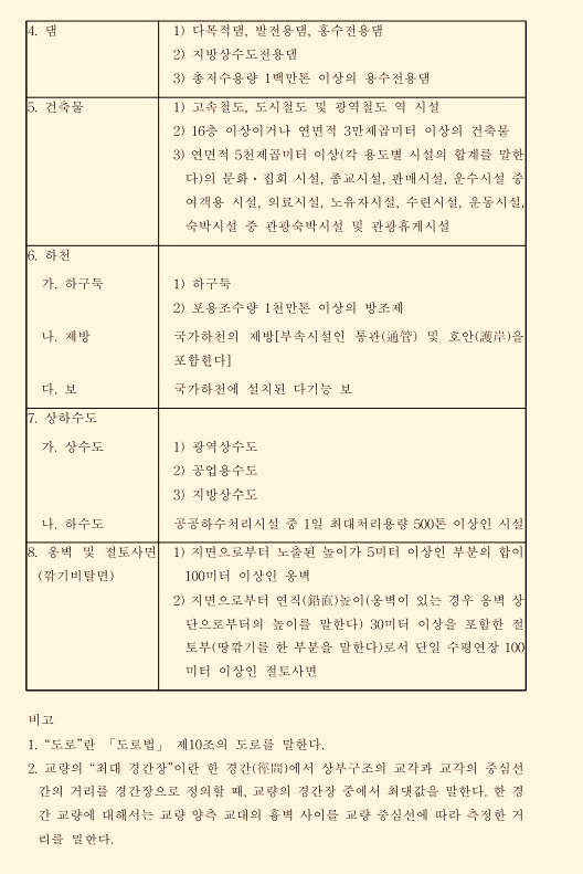 1. 법 제2조제4호가목의 시설 중 별표 2에서 정하는 시설