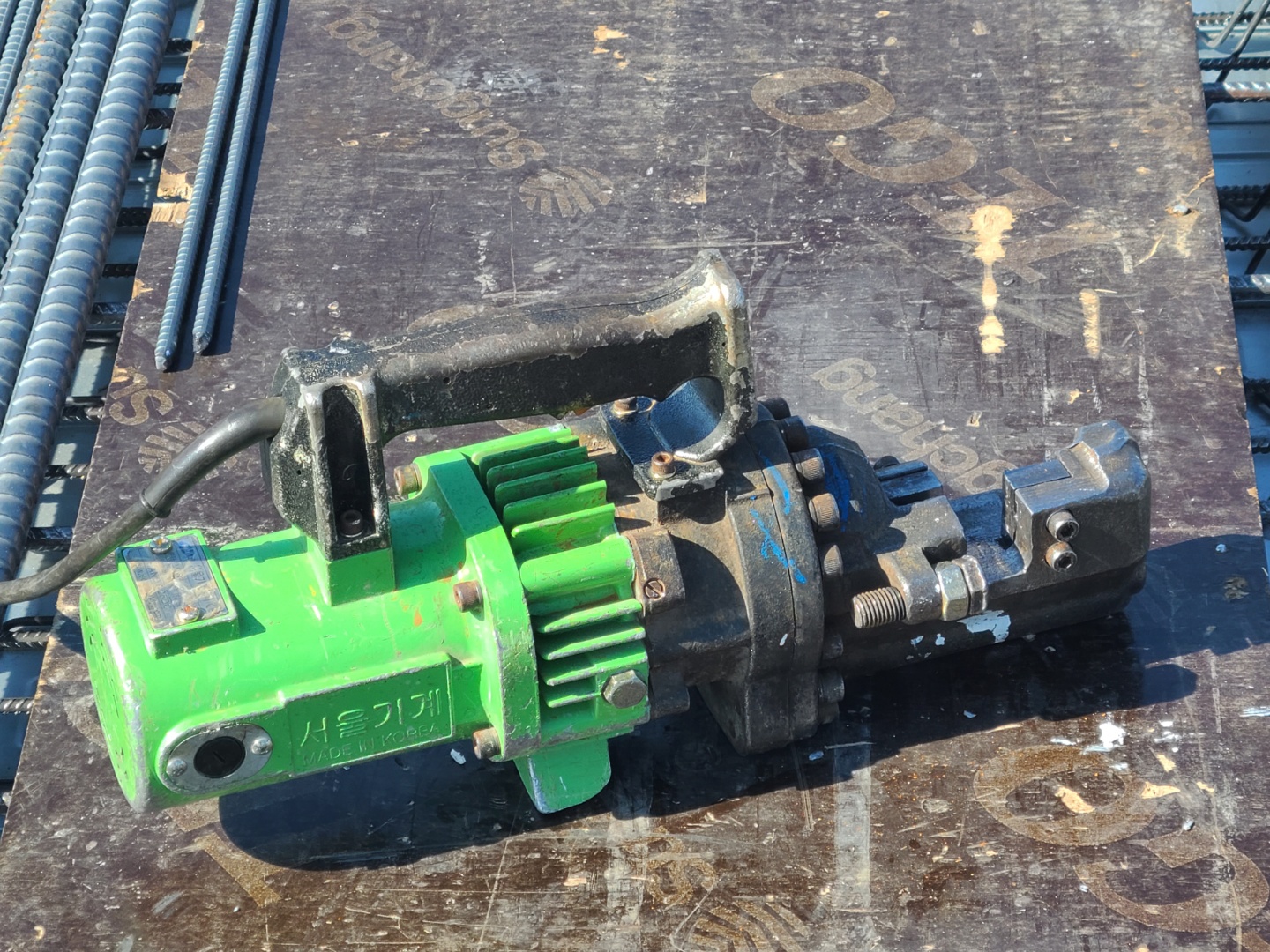 사진에 보이는 철근 절단기는 핸드 철근 절단기