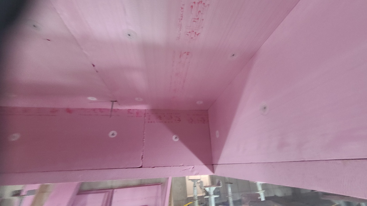 공사가 완료된 단열층 및 방습층은 병행하는 공사와