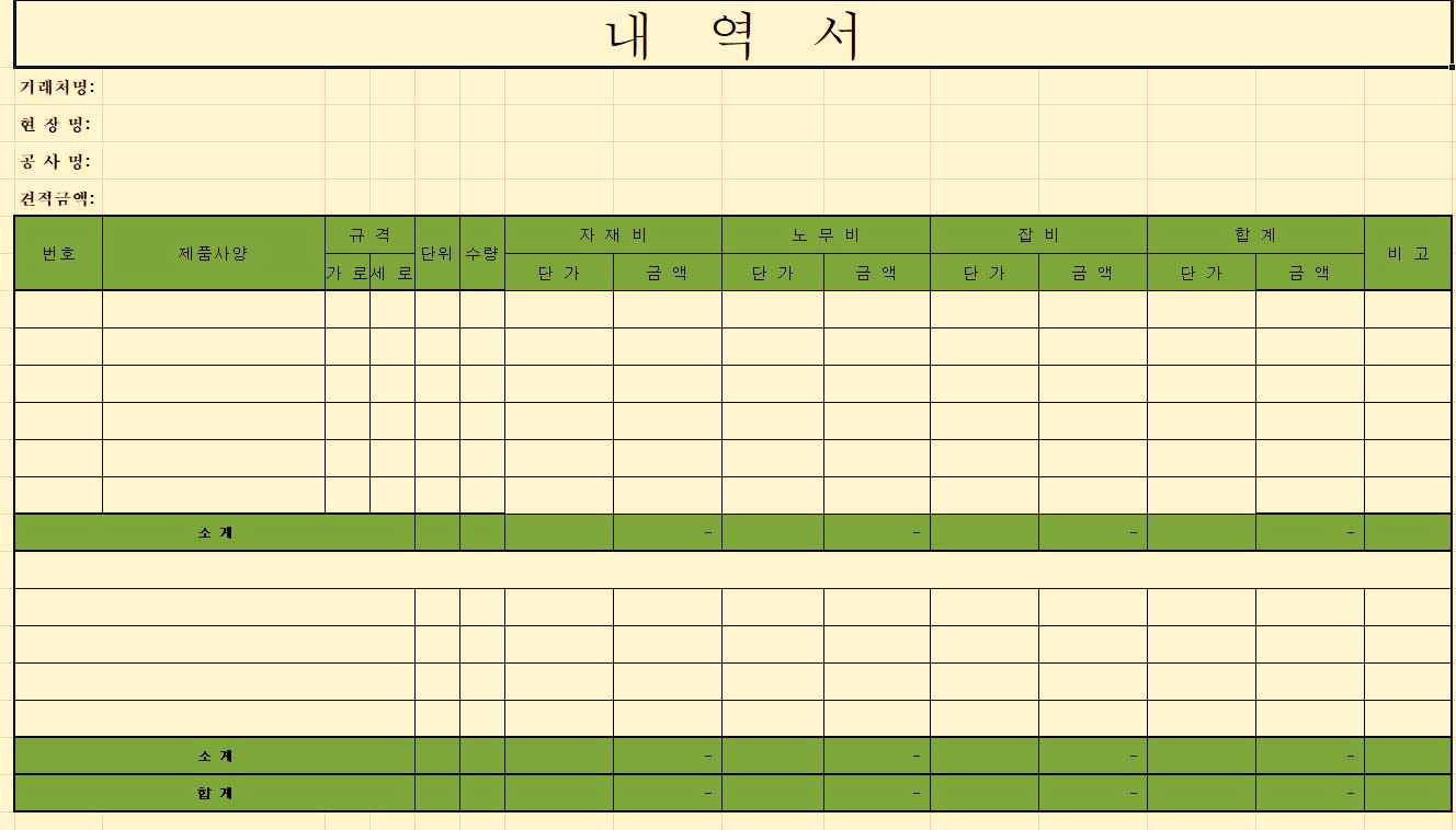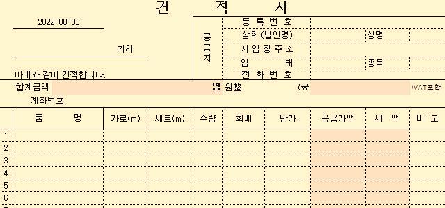 이 견적서는 건설 현장에 주로 사용하는 양식입니다