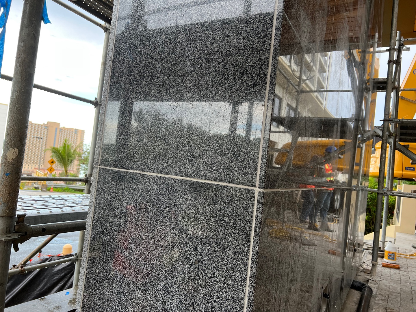 벽천에 설치된 대리석을 보면 가로 홈의 깊이가 1cm 정도로 가공