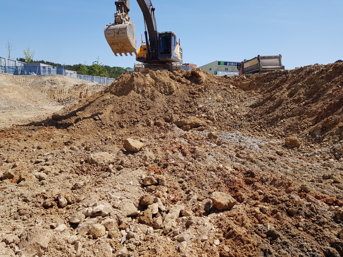 (6) 수평배수층을 포설한 후 시공 장비로 안정성을