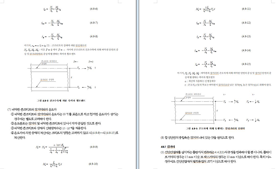 ⑧ 지점침하와 온도변화의 영향에 의한 2차응력과 단면의 급격한 변화, 재료의 부식 등에 의한 응력집중에 대해서 고려하되, 이 값들은 될 수 있는 한 작게 되도록 하며 어쩔 수 없는 경우에는 그에 대응하는 설계를 해야 한다.