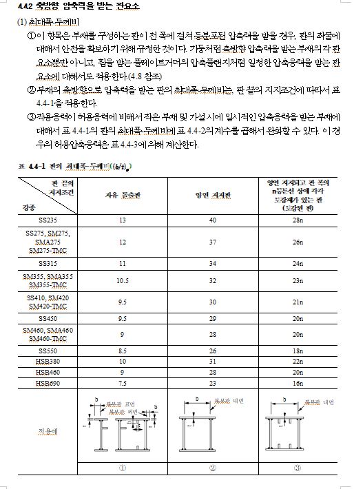 4.2.2 구조용 강재 및 용접부의 허용응력