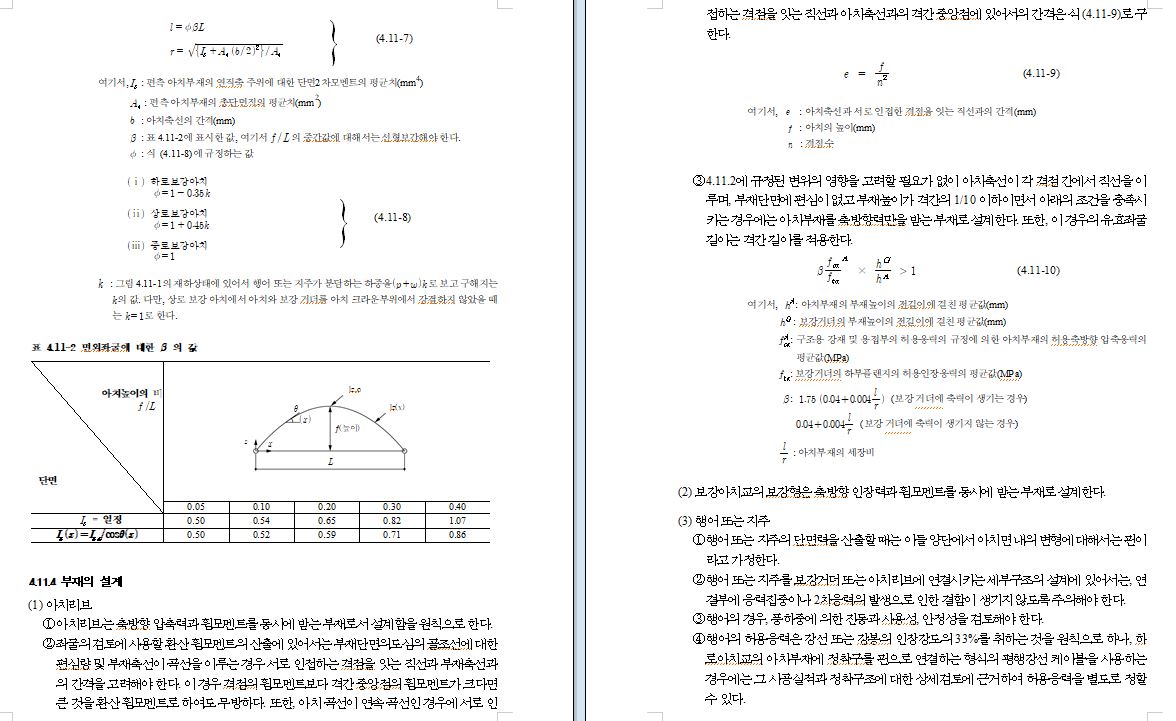표 4.1-1 부재의 세장비
