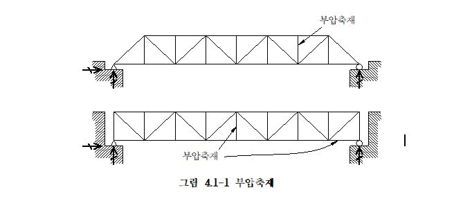 나. 인장재의 경우 인장력이 작용할 때의 편심은 작게 되는 경향이 있으므로 부재가 특별히 길지 않는 한 그다지 문제되지는 않지만, 압축재에서는 편심이 점점 증가하고 압축강도를 저하시키므로 바람직하지 못하다. 또, 열차통과에 의한 진동이 생기기 쉽고 피로의 측면에서 보아서도 바람직하지 못하다. 따라서 응력에 여유가 있는 경우라도 너무 세장비가 큰 부재를 사용해서는 안 된다.