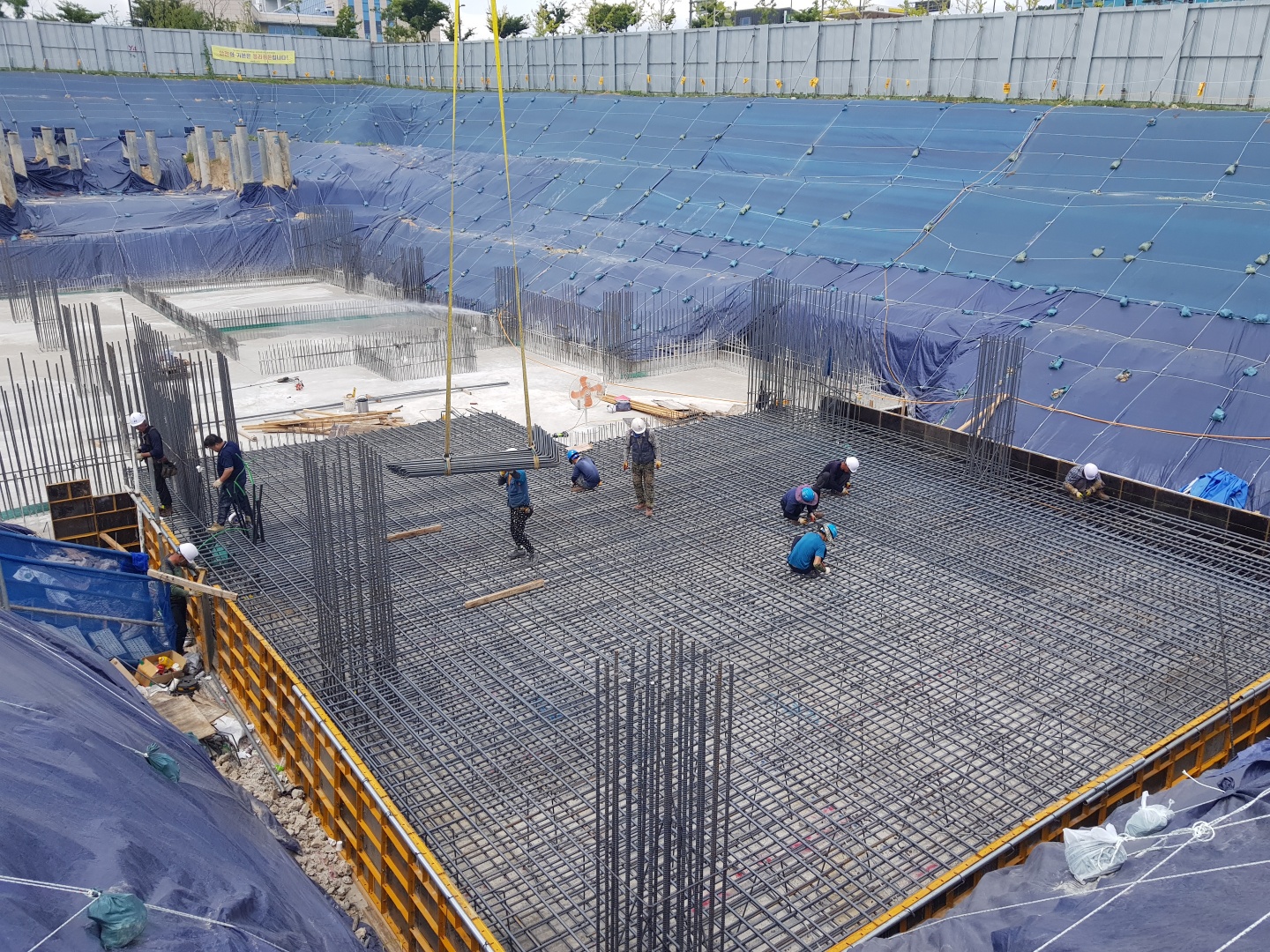 ∙전면기초: 상부구조물의 여러 개의 기둥 또는 내력벽체를 하나의 넓은 슬래브로 지지하는 기초 형식