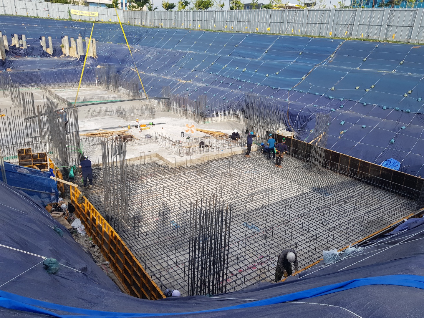 (1) 전면기초의 침하는 지반과 상부구조물의 강성에 따라서 기둥의 위치별로 다르게 발생할 수 있으며, 이로 인해 상부구조물 및 기초판에 손상이 발생하는지 여부를 검토한다.
