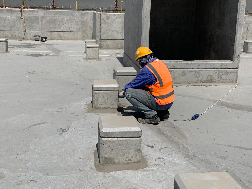 타일을 부착할 때는 압력을 가하고 수평과 수직을 확인하여 정확한 위치에 부착합니다.