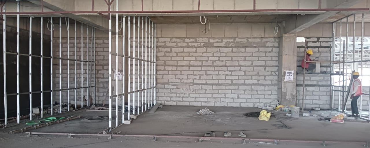 - 바닥 면을 정리하고 수평을 맞춘 뒤, AAC 블록 설치를 시작.