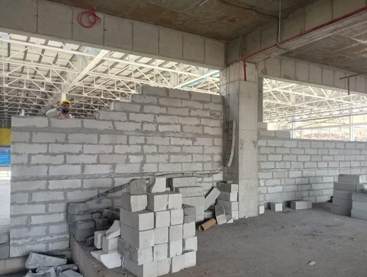 - 바닥 면을 정리하고 수평을 맞춘 뒤, AAC 블록 설치를 시작.