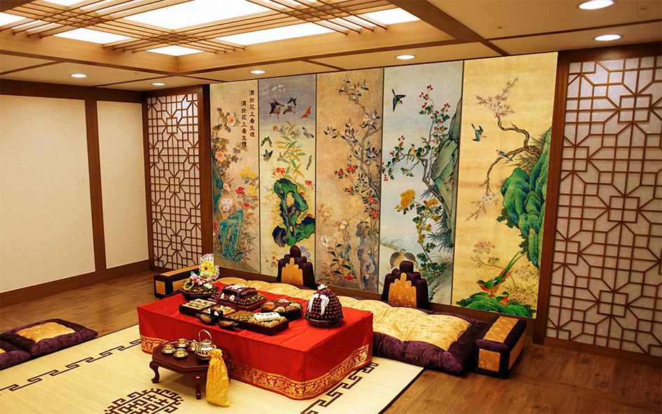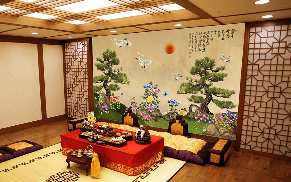 위에 있는 사진은 폐백실에 사용한 맞춤 디자인 벽지 입니다