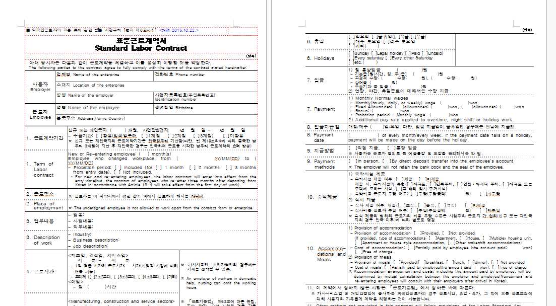 이번 시간은 외국인 근로자를 위한 표준 근로 계약서 입니다.