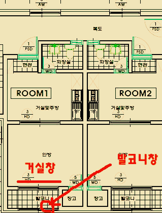 먼저 거실단창의 위치 부터 알아 보도록하겠습니다