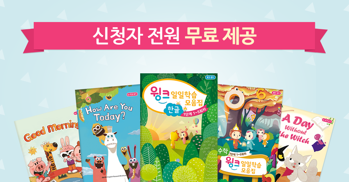 4~8세를 위한 No.1학습, 윙크! 윙크 무료학습 신청하면 한,수교재와 영어이야기책까지 무료로 받아보세요