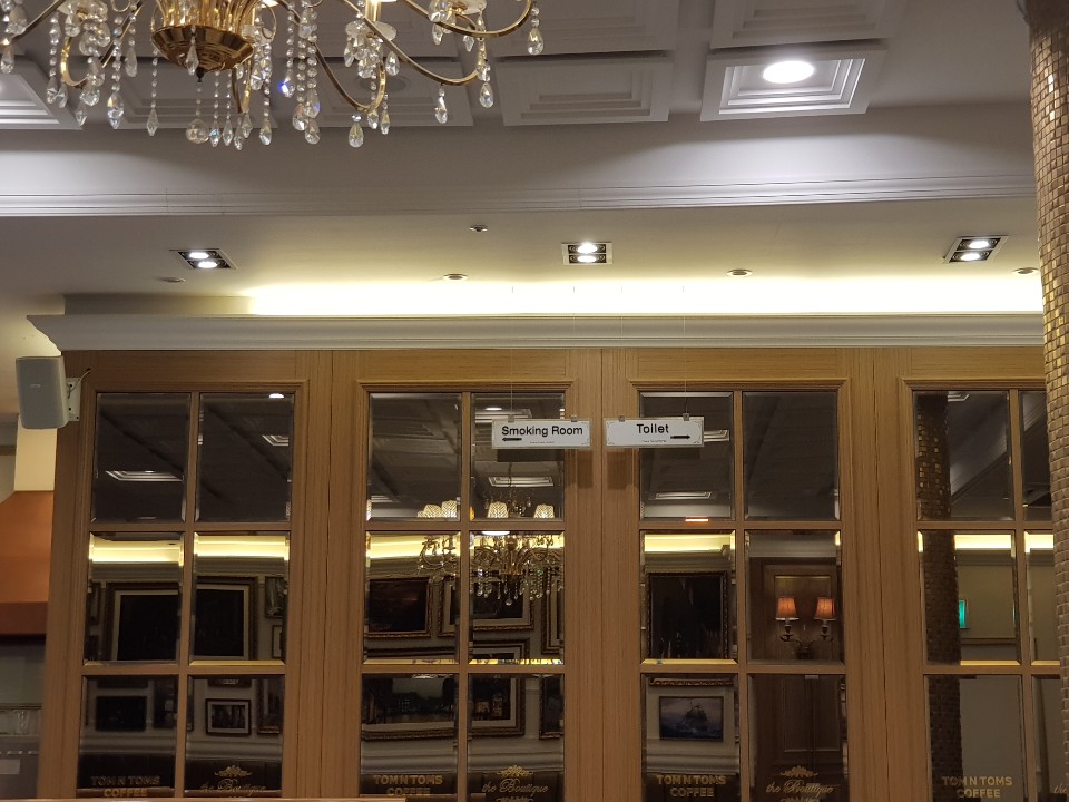 실내에 장식을 위해 골드 미러 유리를 부분적으로 인테리어 효과를.....