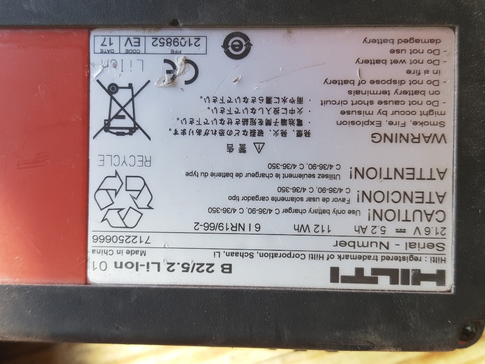전동기 배터리를 알아보면 힐틸은 대용량도 있고 저용량도 있는데 위사진은 대용량입니다 통상 대용량 밧데리를 사용하는 것이 일반적이며 저용량은 특별히 구입할 필요가 없습니다.