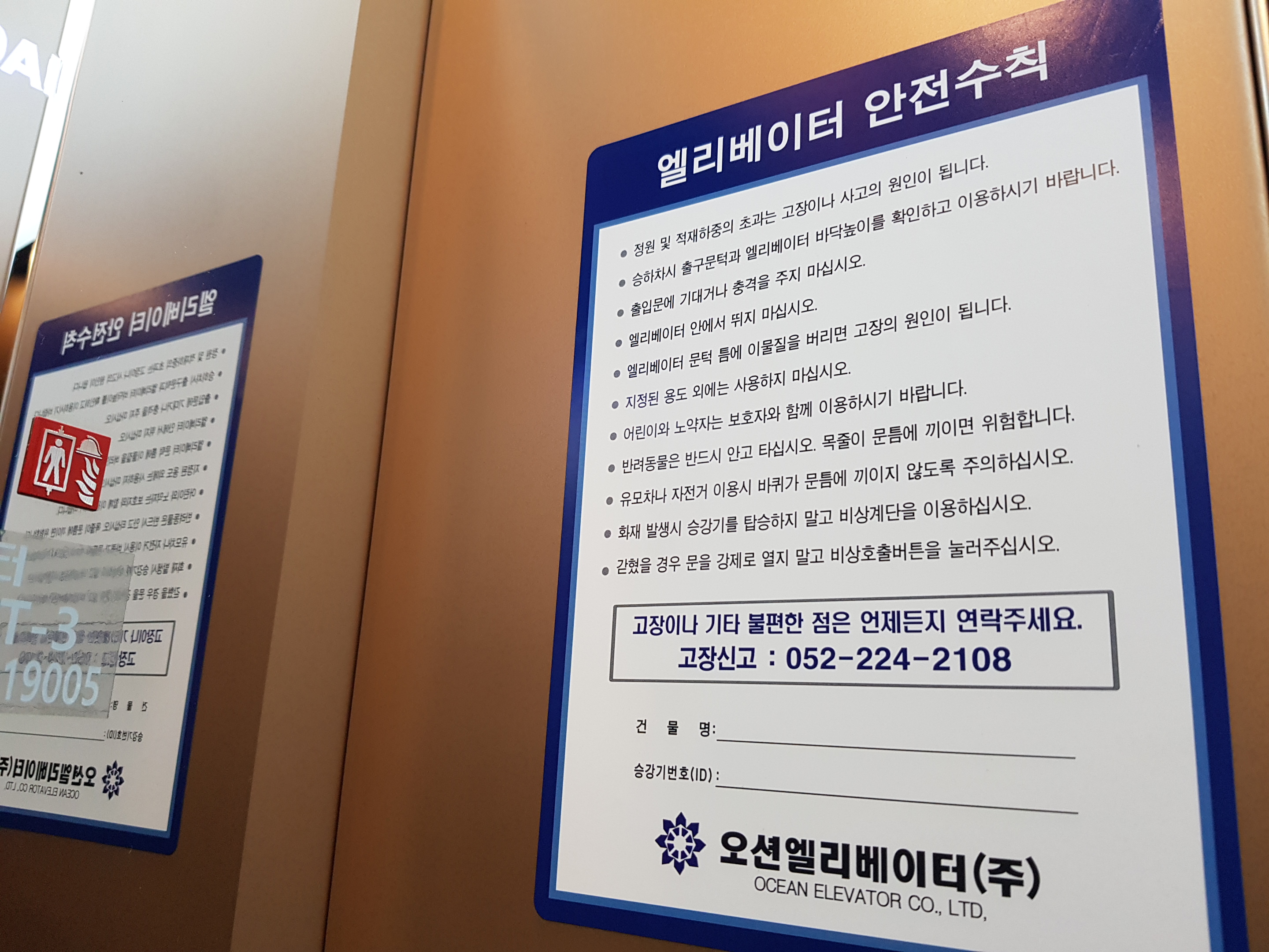 엘리 베이터 내・외부에 보호조치 하여야 합니다