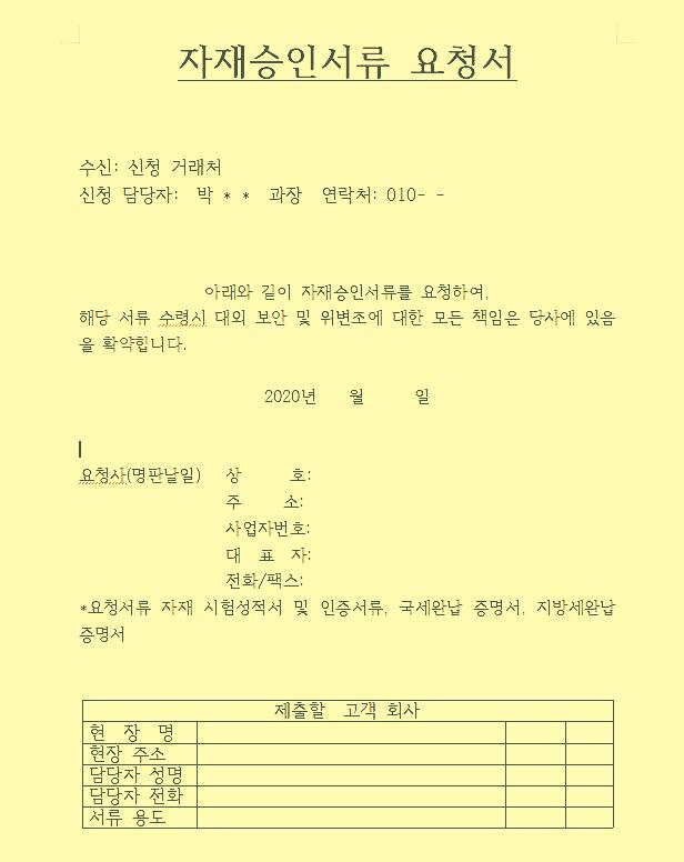 거래처에 자재 승인신청서를 요구할
