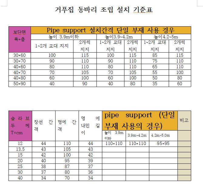 최적 설계에 대한 검토(멍에, 장선, 가설재 배치 간격)