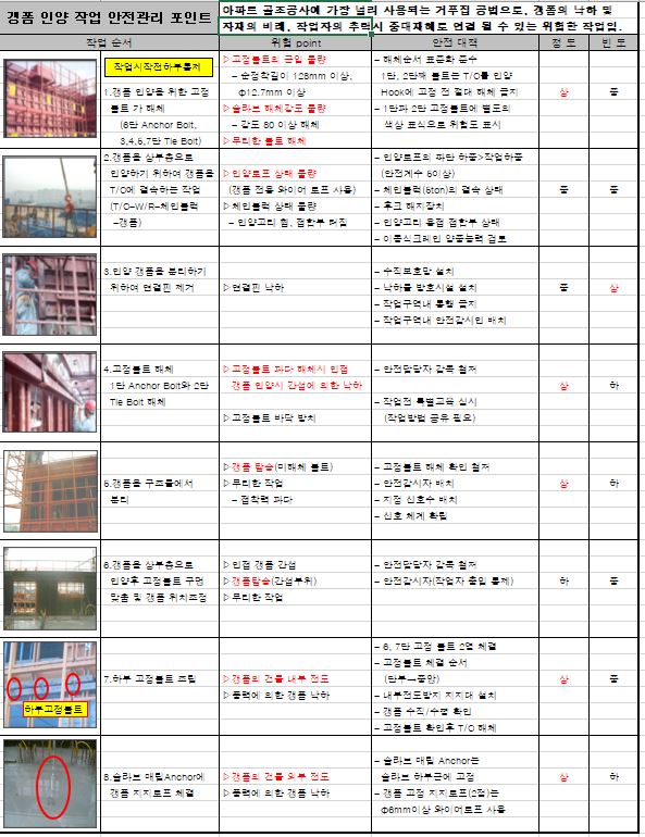 중대재해로 연결 될 수 있는 위험한 작업이기
