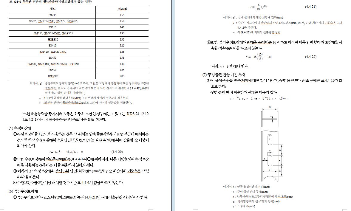 4.2.2 구조용 강재 및 용접부의 허용응력