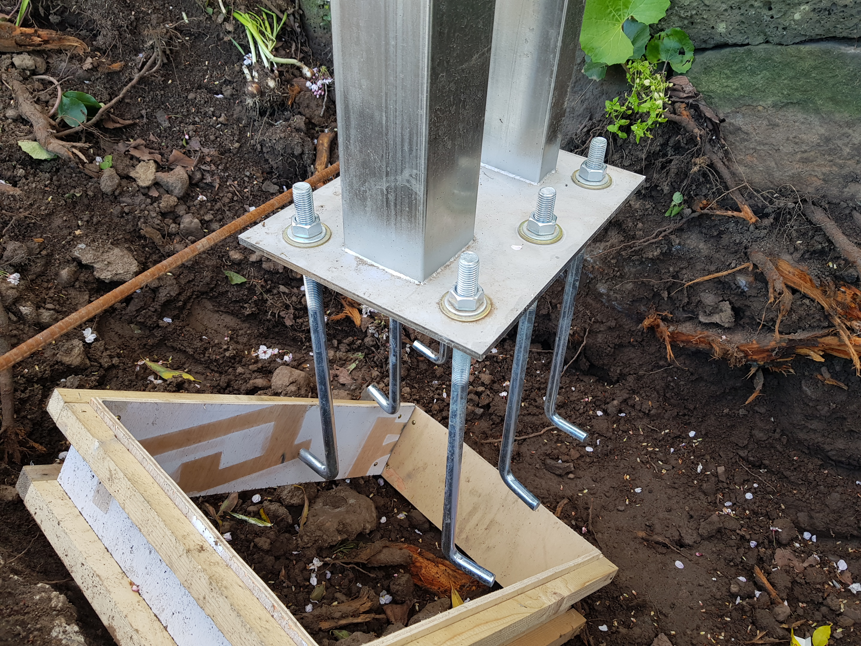 철물을 사용하여 콘크리트에 견고하게 정착시킨다.