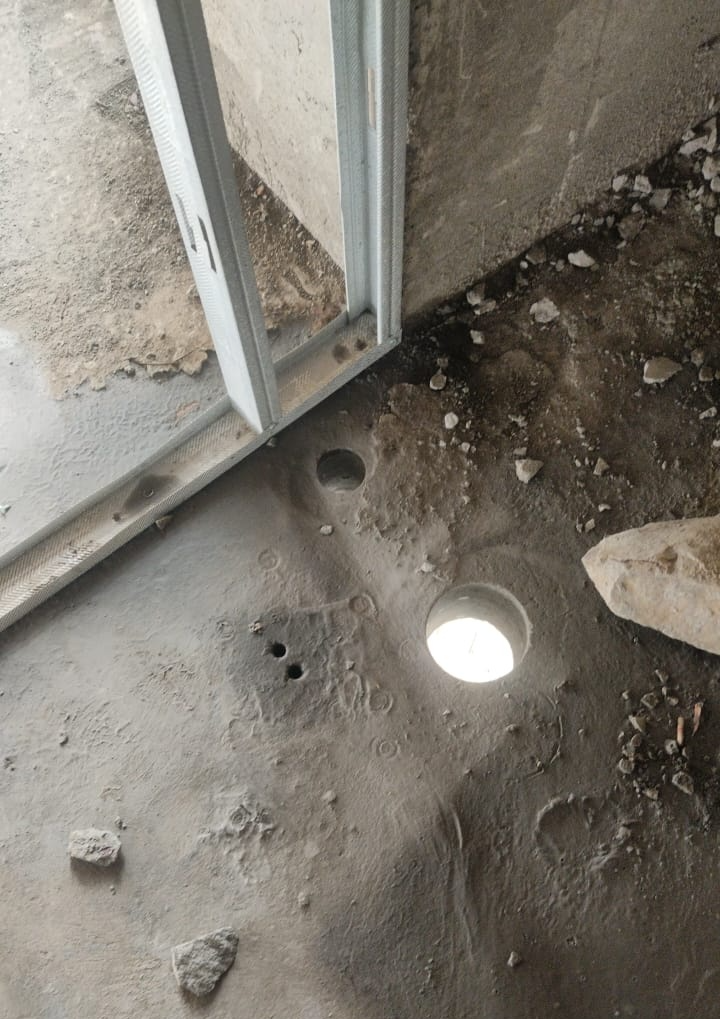 - 구멍이 완성되면 코어 드릴 머신을 서서히 멈추고 비트를 제거.